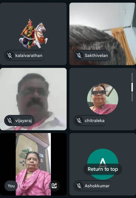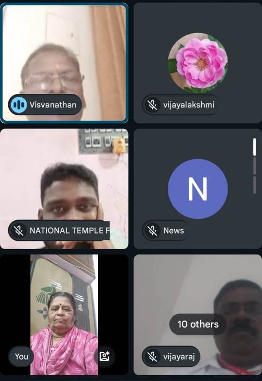 அனைவருக்கும் வணக்கம். தேசிய திருக்கோயில்கள் கூட்டமைப்பின் தலைவர், மத்திய அரசின் சட்ட ஆலோசகர் முனைவர் பி.இராமஸ்வாமி அவர்கள், தேசியப் பொதுச் செயலாளர் திரு.சந்திரபோஸ் பெருமாள் அவர்கள், செயலாளர் திரு.சு.பா.ஞானவேல் சரவணன் அவர்கள் ஆகியோரின் வழிகாட்டலுடன் நம் தேசிய திருக்கோவில் கூட்டமைப்பு தமிழ்நாடு புதுச்சேரி, இன்னும் ஒரு சில மாநிலங்களிலும் சிறப்பாக நடைபோட்டுக் கொண்டிருக்கிறது. இந்நிலையில் 08.01.2026 அன்று முதன் முதலாக நம் தேசிய திருக்கோயில் கூட்டமைப்பின் புதுச்சேரி யூனியன் பிரதேச தலைமை நிர்வாகிகள், புதுச்சேரி, காரைக்கால் மாவட்ட நிர்வாகிகள் ஆலோசனைக் கூட்டத்தை google மீட் வழியாக நடத்தினோம். இதற்கு திருமதி.வைஜெயந்திராஜன் அவர்கள் ஏற்பாடு செய்த போது எந்த அளவிற்கு இது செயல்படுத்த முடியும் என்கின்ற எண்ணத்துடன் தான் செயல் பாட்டில் இறங்கினேன். ஆனால் அத்தனை நிர்வாகிகளும் மூன்று நாட்களுக்குள் செய்த ஏற்பாட்டில் மிகப்பெரிய ஆர்வத்துடன் வந்து இணைந்து நிகழ்ச்சியைச் சிறப்பித்தது மட்டுமல்லாமல் தங்களுடைய கருத்துக்களை தெளிவாகவும், ஆக்கபூர்வமாகவும் பகிர்ந்தார்கள்.