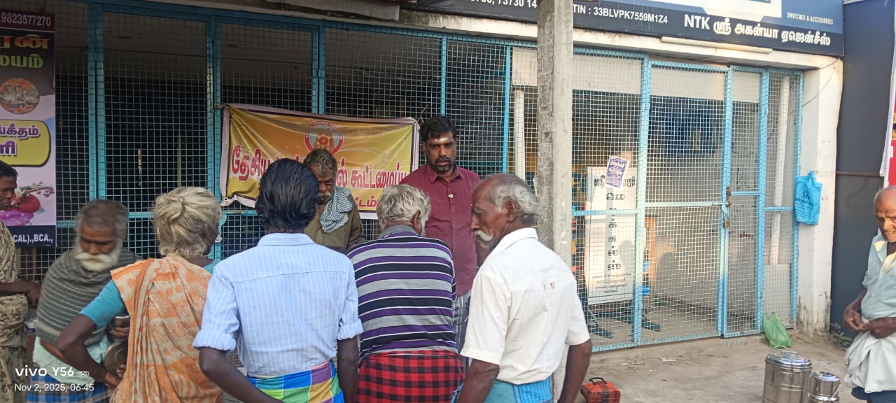 தேசிய திருக்கோவில்கள் கூட்டமைப்பின் சார்பாக வேதாரண்யம் வட்டம் தாணிக் கோட்டகம் பகுதியில் மூலிகை கஞ்சி வழங்கப்பட்டது