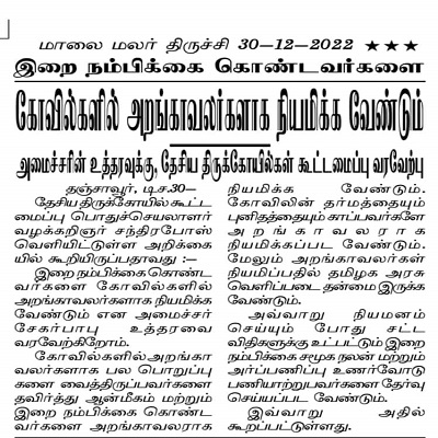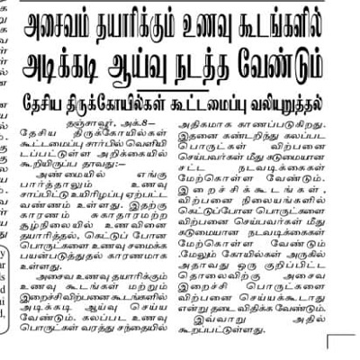 National Temple Federation,Non-vegetarian food establishments should be inspected frequently.